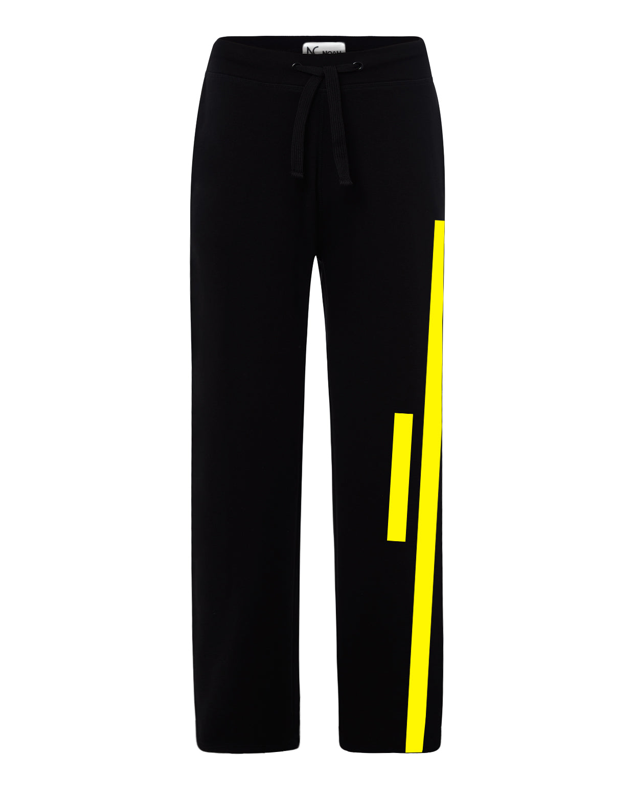 The NC Volt Sweatpants reinterpret casual elegance with precise tailoring and luxurious comfort. Crafted from premium black cotton, they feature a relaxed yet structured silhouette that drapes naturally while maintaining refined proportions. Discreet asymmetrical yellow stripes trace one side of the hem and knee, creating a subtle visual dialogue with the NC Polo Volt for a cohesive and harmonious total look. Thoughtful details, including side pockets and a soft, elasticated waistband, enhance wearability, while the exclusive personalized fit service ensures each pair adapts seamlessly to the body, offering balance, posture, and quiet confidence.